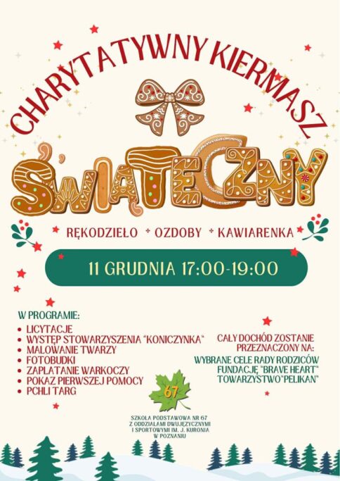 Serdecznie zapraszamy na Charytatywny Kiermasz Świąteczny, który odbędzie się 11 grudnia w godz. 17:00–19:00.
