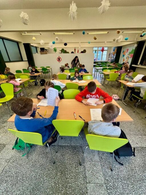 W wydarzeniu wzięło udział ponad 60 uczniów z całej szkoły, którzy rywalizowali w trzech kategoriach wiekowych: klasy 1–3, 4–6 oraz 7–8. Uczestnicy popisywali się imponującą wiedzą, odpowiadając na pytania dotyczące kultury, geografii, historii oraz ciekawostek związanych z krajami anglojęzycznymi. Poziom był naprawdę wysoki! Cieszymy się z tak licznego udziału i ogromnego zaangażowania uczniów. Wyniki ogłosimy po feriach – wtedy też wyłonimy laureatów w każdej kategorii wiekowej. Już dziś jednak serdecznie gratulujemy wszystkim uczestnikom!