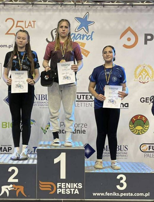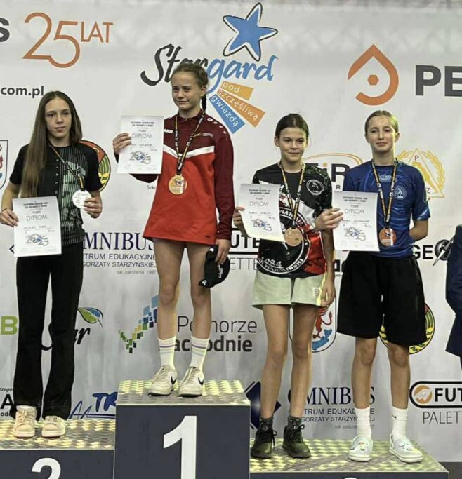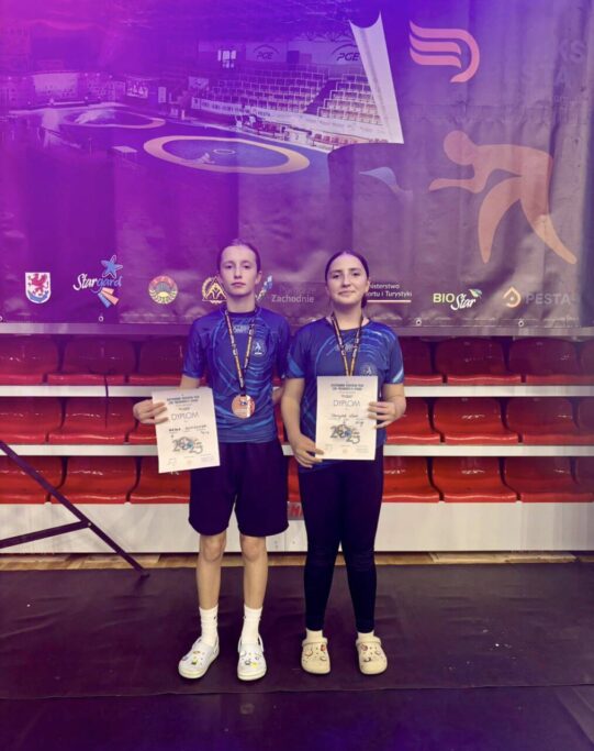 Lena z 8a i Nadia z 8e wywalczyły brązowy medal podczas Międzynarodowych Mistrzostw Polski Szkół Podstawowych w zapasach Stargard 2025.