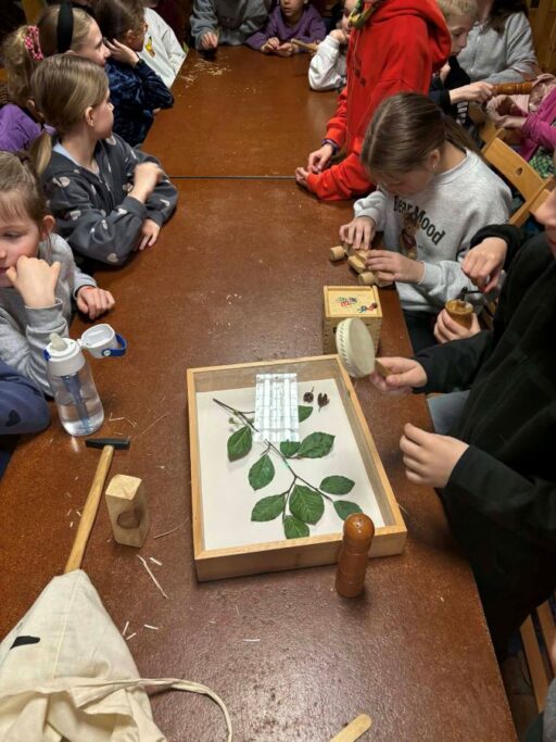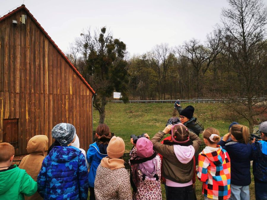 Na zakończenie zajęć wszyscy otrzymali lornetki i powędrowali wypatrywać i nasłuchiwać okoliczne ptaki.